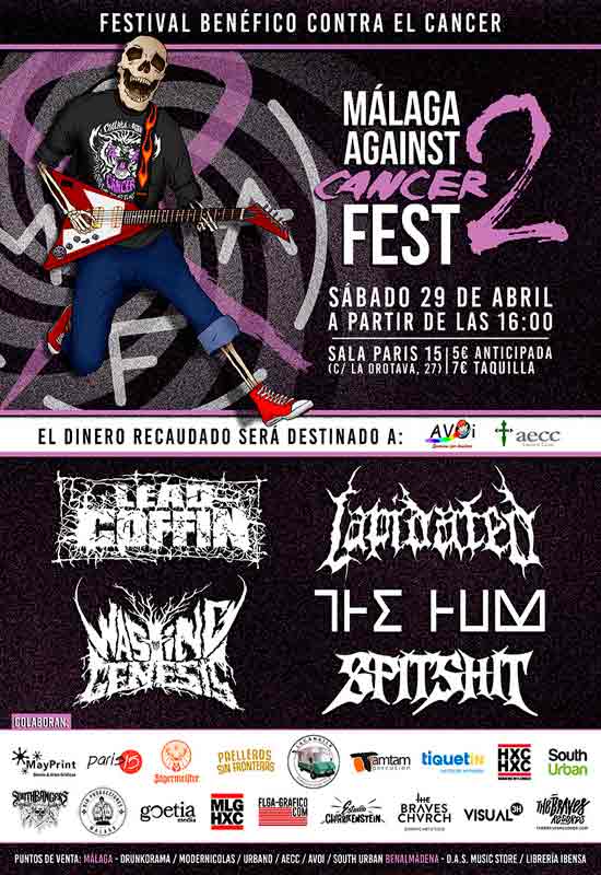 En esta nueva puesta de largo, que tendrá lugar el sábado 29 de abril a las 16:00h, se podrá disfrutar de Spitshit, The Hum, Wasting the Genesis, Lapidated y Lead Coffin por un precio de 5 euros. Las entradas se pueden comprar en South Urban, Urbano Bar, Modernicolas, Drunkorama, las sedes de AVOI y AECC, y también de forma online pinchando en este enlace.