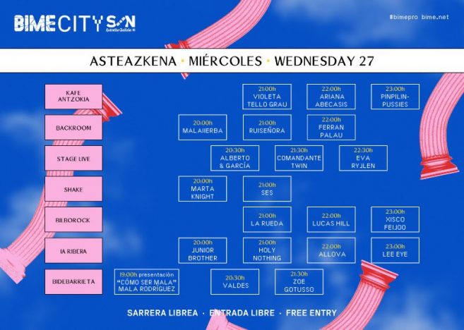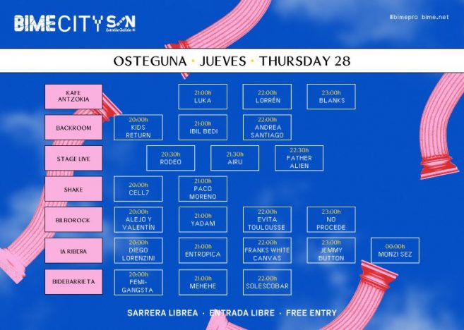 Las programaciones de BIME Live y BIME City son las siguientes: