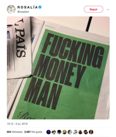 Muchas pistas no tenemos al respeto. Aun así, ella misma ya empezó a caldear el ambiente lanzando un mensaje en twitter con un dos emojis, billetes y un corazón roto. Tuit que hizo nueve horas antes. Además, hay que recordar que hace más de un año que Rosalía apareció en redes junto a Pharrel Williams en los Conway Recording Studios. Nunca ha llegado a salir lo que se grabó allí, así que, aunque sea otra especulación más, puede ser este el día. Certeza al cien por cien de que pasará no lo sabemos, pero solo nos quedan un par de horas para descubrir que hay detrás de estas misteriosas palabras. Lo que sí es seguro es que dentro de muy poco podremos ver a Rosalía en escenarios españoles, concretamente en el Mad Cool Festival y en el Bilbao BBK Live.