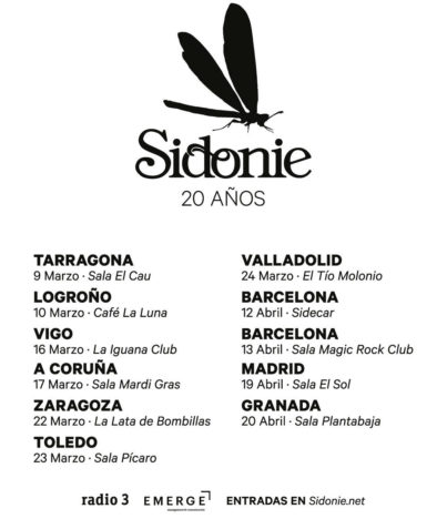 Con motivo de los 20 años de Sidonie sobre los escenarios, la banda ha hecho un comunicado para anunciar su próxima gira. Una serie de conciertos que recorrerá las primeras salas en las que Marc Ros, Axel Pi y Jesús Senra tocaron cuando editaban sus primeros discos. Esta gira especial hará un repaso a toda su discografia y será en formato trío.