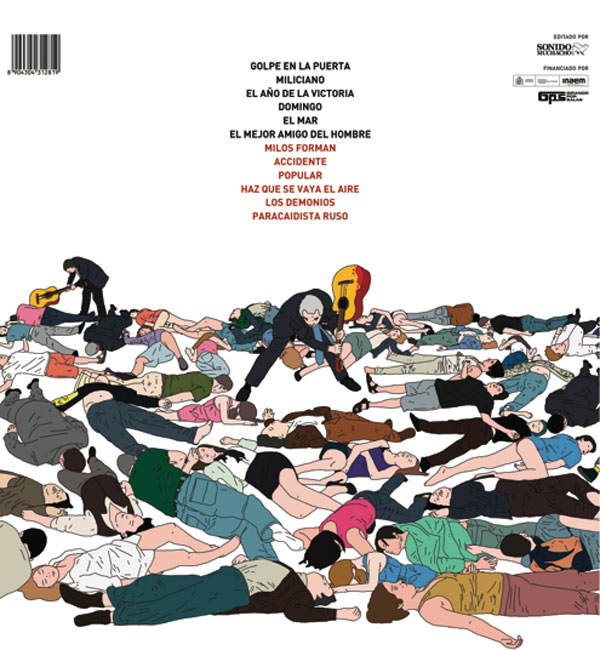 Y es 100% Tigres Leones ya desde su portada, obra de Querido Antonio. En ella aparecen Los Del Río -suponemos que en una alusión a la decisión del SanSan Festival de ponerlos como cabezas de cartel este año- cantando ante un público que yace en el suelo, a medio camino entre la incosciencia y la muerte, mientras en la contraportada están directamente rematándolos a guitarrazos.