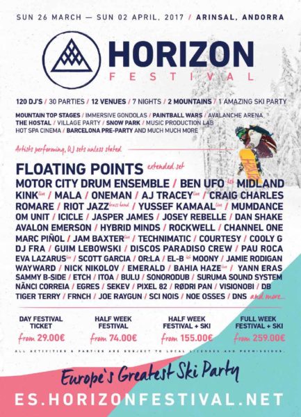 Hace un mes salieron a la luz los primeros artistas, entre los que destaca Floating Points, que promete regalar una sesión de las largas donde la mezcla de estilos será la tónica dominante; Sam Shepherd o Ben UFO. Ahora entre los nuevos nombres encontramos al reconocido productor y dj Marc Piñol, DJ Fra, la crew de Discos Paradiso y otros dos frecuentes de la noche barcelonesa, Pau Roca y Guim Lebowski, que se unen a los más de 120 Dj’s repartidos en treinta fiestas a lo largo de la semana a 1500 metros de altura.