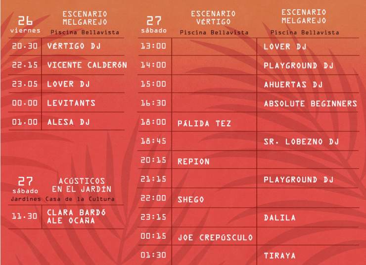 A punto de cumplir los veinte la cita jienense resiste entre esos pocos que siguen apostando por artistas singulares cuya excelencia no viene avalada por el éxito o los clicks. Un refugio veraniego para los que huyen de las grandes urbes festivaleras para disfrutar de un fin de semana de ese "espacio vip" para el que no es necesario una entrada especial. "Nos tenemos entradas vip porque todo nuestro recinto es Vip" alegan desde la Asociación Cultural Vértigo Estival. Hablamos de la piscina Bellavista, donde podrás ver a grupos como Pálida Tez o Repion desde el agua o bailar descalzo con Dalila o Shego sobre esa alfombra de cesped de más de un kilómetro.