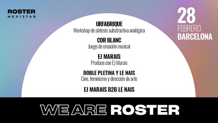 We Are Roster se celebrará el próximo viernes en la sala Abaixadors 10 de Barcelona, con diferentes charlas y talleres organizados por los artistas del Roster y moderadas por Frankie Pizá. Cor Blanc hablará sobre jugar a guardar sonidos de apps y de páginas web como punto de partida para crear sus canciones; Urfabrique ofrecerá un workshop de Síntesis Sustractiva Analógica con el objetivo de presentar el sistema de funcionamiento de un sintetizador analógico; y el productor EJ Marais creará una canción a través de samples. Por otra parte, Doble Pletina y Le Nais hablarán sobre Cine, feminismo y dirección de arte. La jornada finalizará con un B2B entre EJ Marais y Le Nais.
